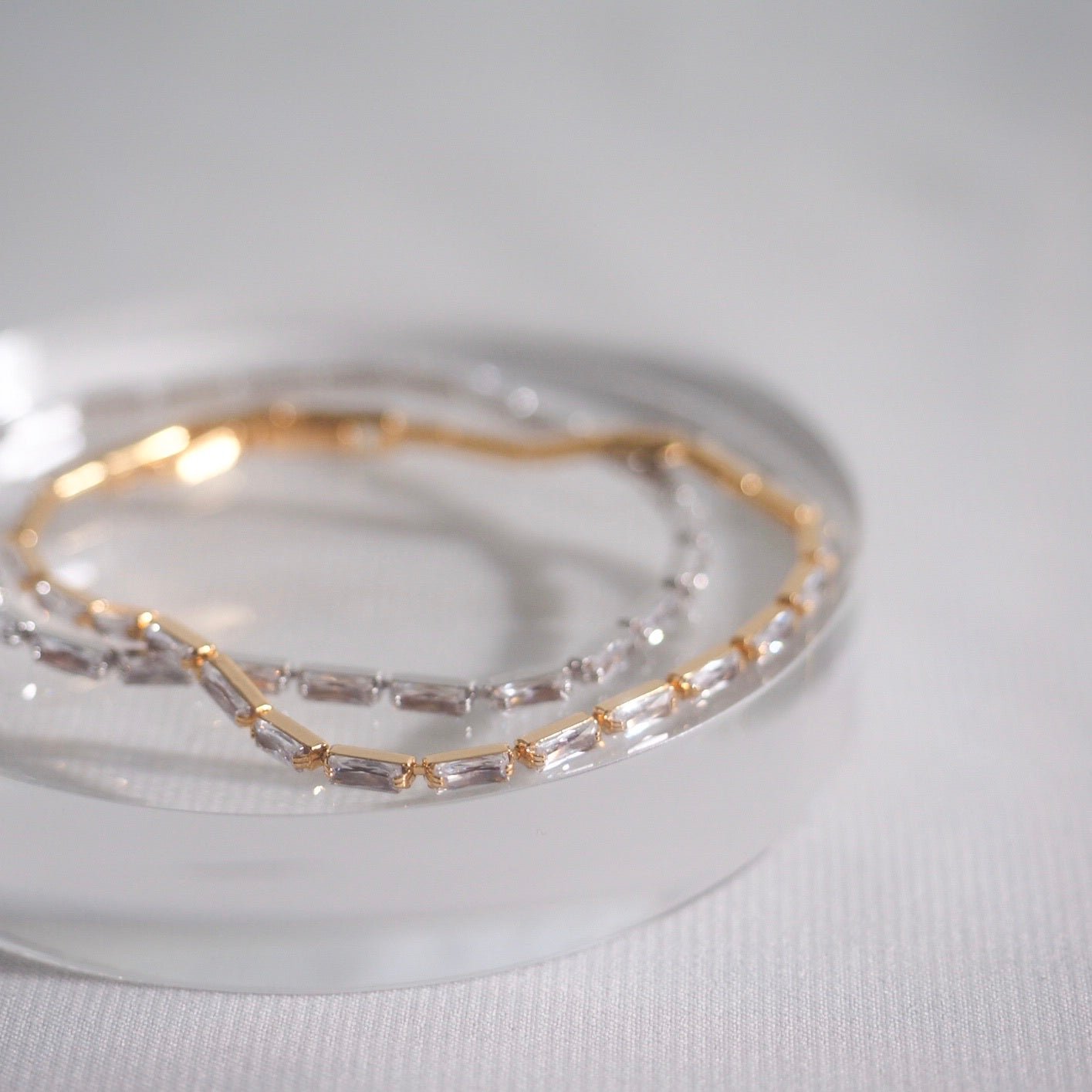 Complete every look with this dazzling Bayless Crytal Bracelet.?This exquisitely crafted bracelet boasts cubic zirconia stones in a framed pave design lined up to create simplicity. grace. and elegance.
