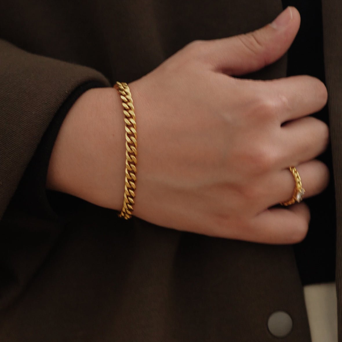 Wrap your wrist in the luxury of our Brie Intricate Link Bracelet. Crafted in a gold plated stainless steel featuring an adjustable chain with a lobster clasp closure.