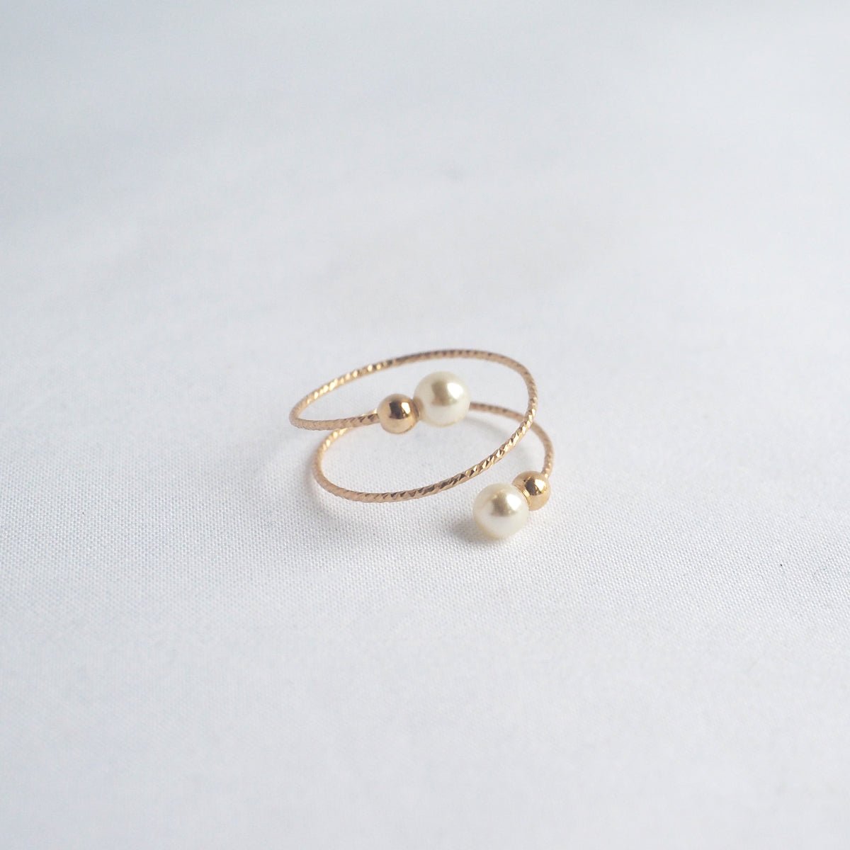 Are you?looking for a pearl creation with a barely-there binging? Our Dion Pearls Ring?is a great choice to discreetly compliment your styling. Handcrafted to feel like it curves around your finger. the delicate ring flaunts a textured adjustable band that results in two freshwater pearls with one ball on each end for the ideal finish.?
