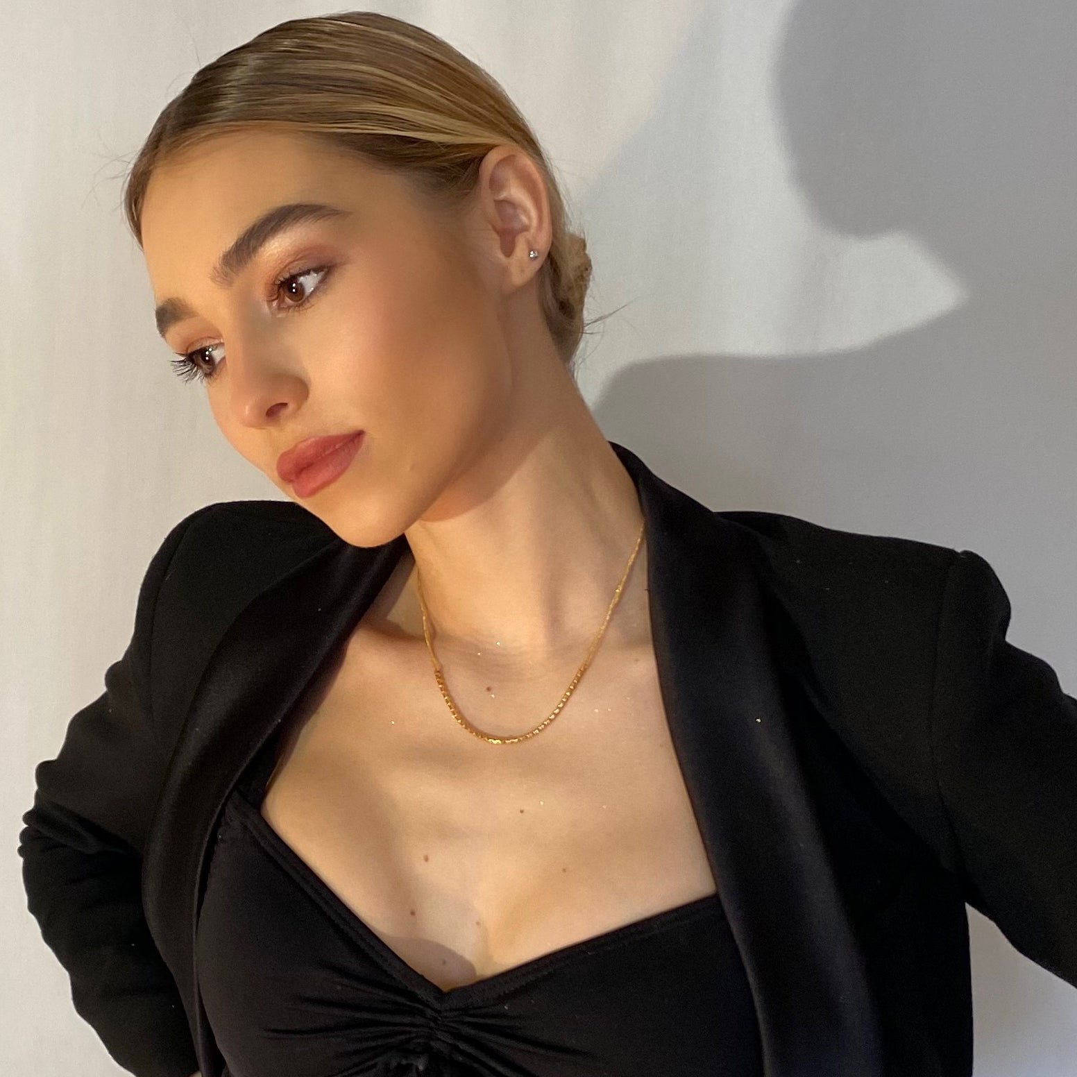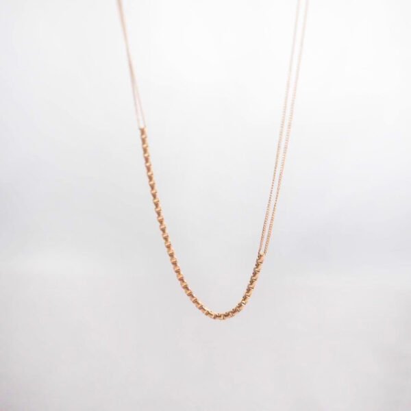 This?gold-plated?box layered chain necklace is the epitome of classic chic.?A sensational look. this half box. and double-layered cable chain necklace is a captivating addition to any attire.?