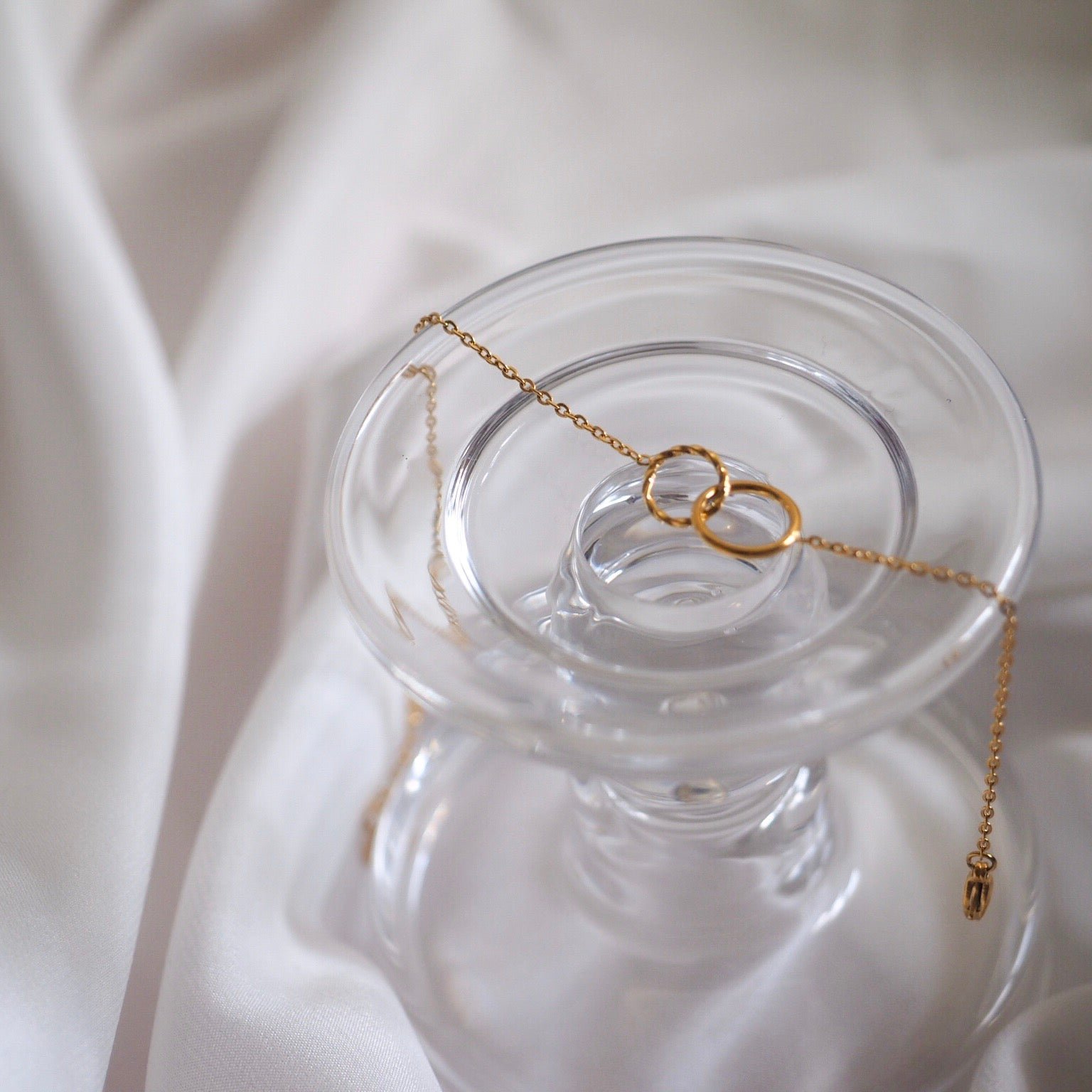 Adorned with two circle links of differing sizes. this gold-plated sterling silver bracelet makes a wonderful accessory for all occasions. It features an adjustable cable chain and securely locks with a lobster clasp.