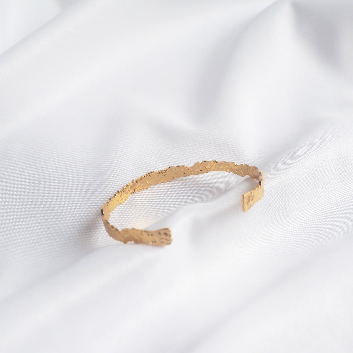 Our?simple and modern?Melodie?Hammering Foil Bracelet?is?perfect on its own or with any other piece. The?cuff has been hammered and dimpled to a unique organic texture. The perfect simple addition to your stack. or stand-alone style.