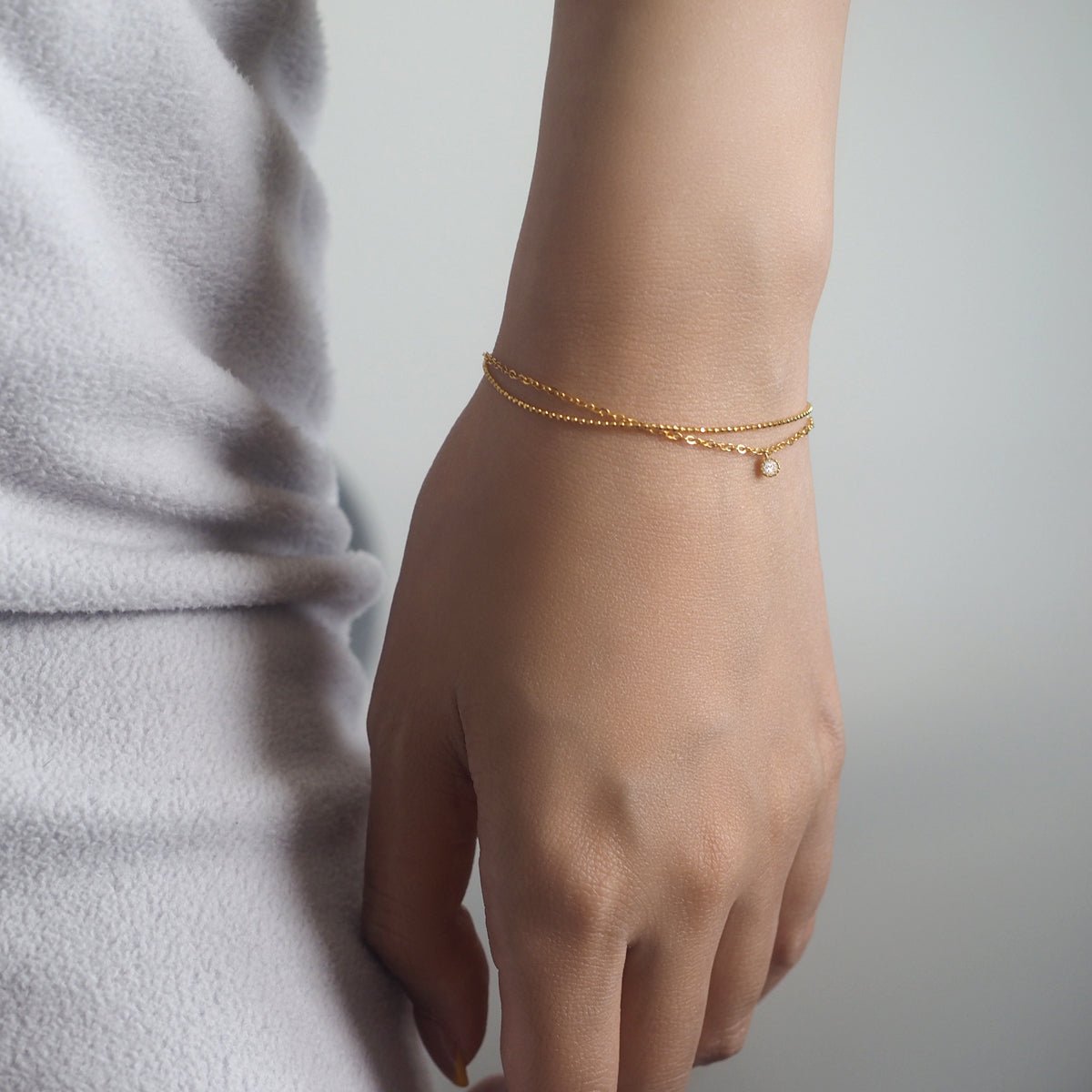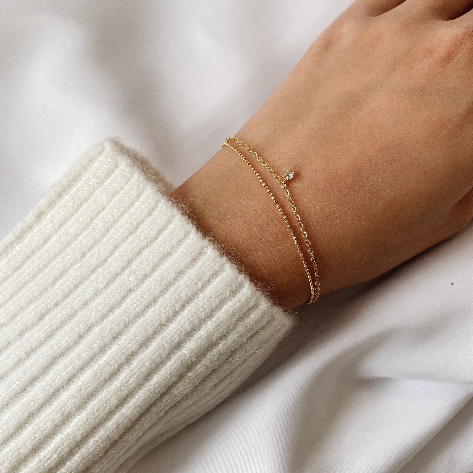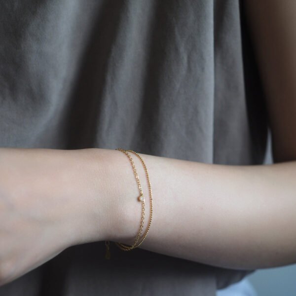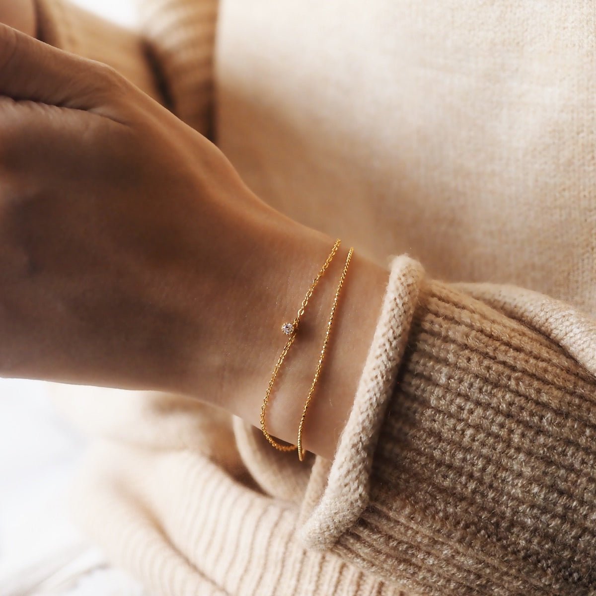 ? Delicate two layered gold bracelet looks great alone or layering with other bracelets. A perfect piece to get that simple chic look.