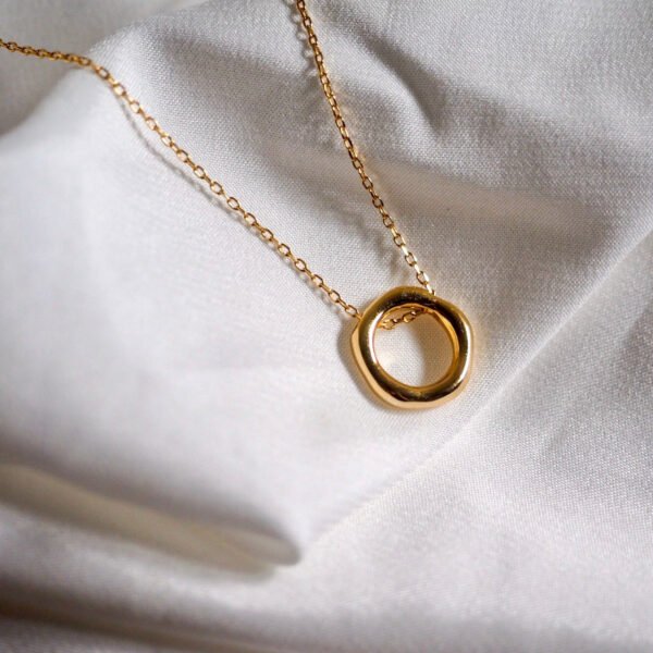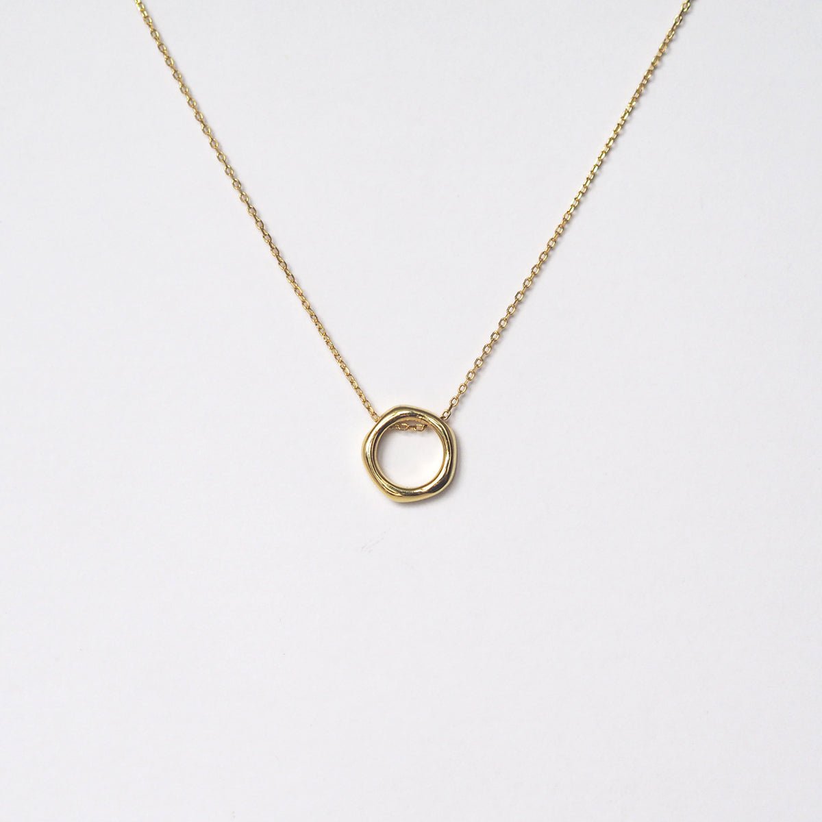 Whether you’re making a bold fashion statement or keeping it simple. the QUINN IRREGULAR HOOP NECKLACE will elevate your accessory game. This fine necklace features a thin chain with a delicate round twisted pendant for ultimate chic style.